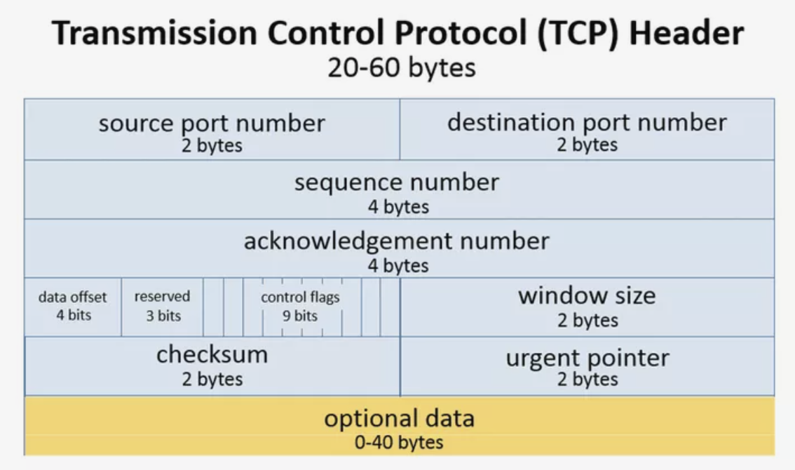위 그림은 TCP 프로토콜 헤더의 포맷입니다. 주목해야 할 부분은 reserved와 그 뒤의 control flags입니다. 각각 3비트, 9 비트라고 표현되어 있습니다. reserved는 미래에 사용하기 위해 남겨놓은 예약된 공간이고, 플래그들은 TCP 세그먼트의 논리 제어 및 데이터 관리를 위해 사용됩니다.