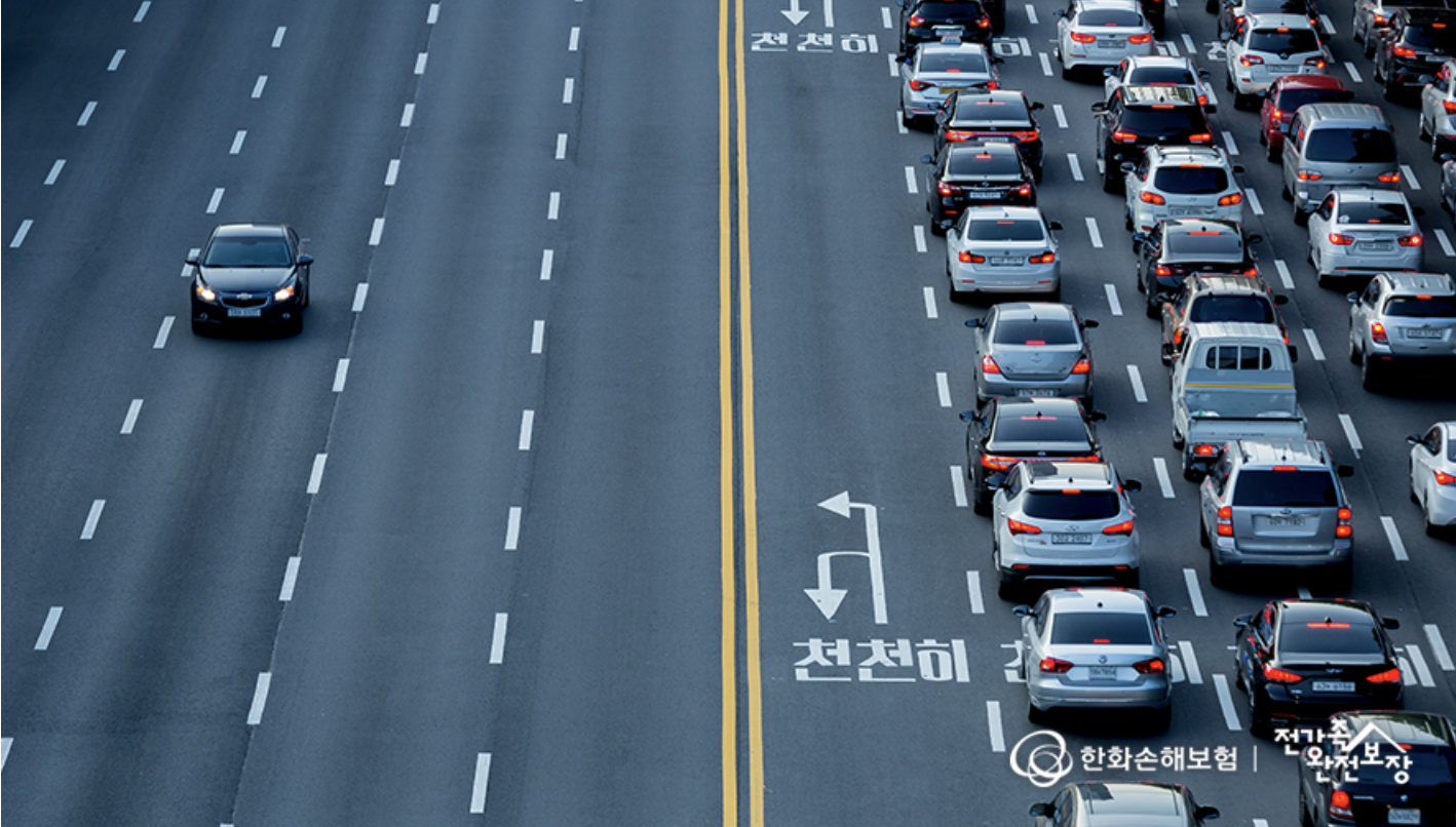 중앙선을 기준으로 왼쪽 도로는 쾌적하고, 오른쪽 도로는 매우 정체입니다. 두 도로의 대역폭(차선의 개수)는 같지만요.