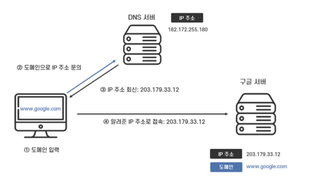 일반 사용자들은 203.179.33.12 같은 IP 주소만 보고서는 이 서비스가 무슨 서비스인지 알기 힘듭니다. 그래서 해당 IP에 별명을 붙여주는데, 이를 도메인 네임이라 부릅니다. 도메인 네임을 기반으로 IP 주소를 획득하는 과정을 DNS 라 합니다. 이때 매핑되는 IP는 여러 가지 일 수 있습니다.