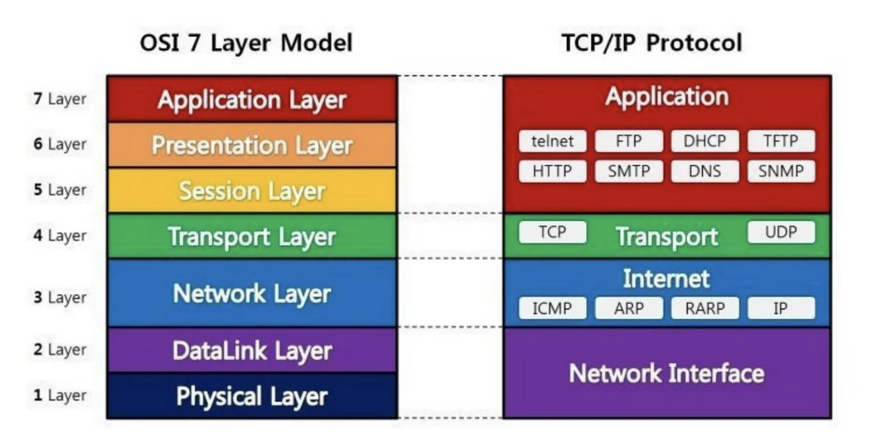 OSI 7 Layer와 TCP/IP 프로토콜 스택은 컴퓨터 네트워크에서 데이터를 주고받을 때 사용되는 모델입니다. 이 두 모델은 모두 네트워크 통신에 대해 설명하지만, OSI 7 Layer는 이론적인 내용을 다룰 때 많이 사용됩니다. 실제 네트워크 모델은 대부분 TCP/IP 프로토콜 스택을 기준으로 동작합니다. 본 글에서는 OSI 7 Layer를 기준으로 설명하겠습니다.