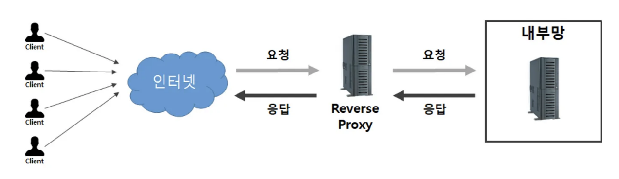Nginx 나 Apache HTTP Server 등의 소프트웨어는 웹 서버의 역할도 하면서 리버스 프락시의 역할도 수행합니다. 리버스 프락시를 사용함으로써 내부망에 위치한 서버의 위치를 숨길 수 있고, 설정(라운드 로빈, 가중치 라운드 로빈, IP 해시, 최소 연결 등)에 따라 부하를 분산할 수도 있습니다.