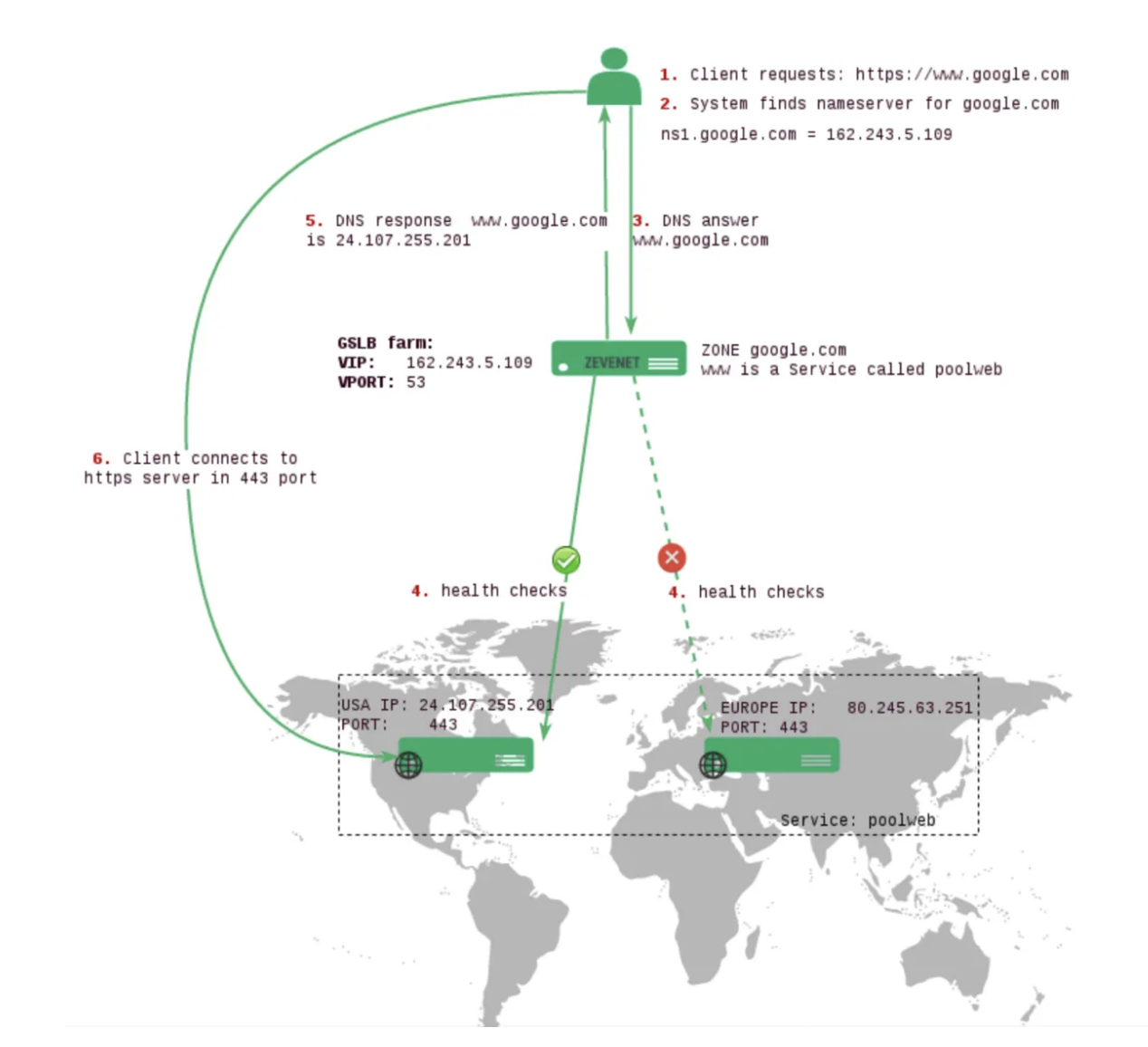 이런 DNS의 단점을 보완하는 장비가 GSLB입니다. GSLB 가 알고 있는 IP에 헬스체크를 수행해 정상인 IP 만 응답합니다. 이런 이유로 GSLB Inteligence DNS라고도 부릅니다.