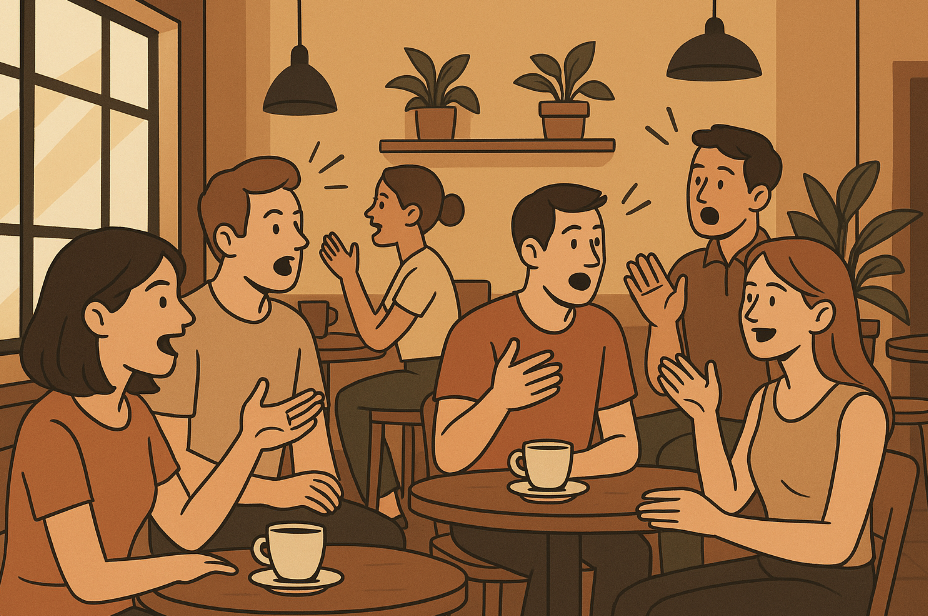 하지만, 큰 목소리가 필요할때도 있습니다. 가령 귀가 어두운 사람과 대화하거나, 음료 제조를 마친 점원이 손님을 부를때는 큰소리가 불가피하죠. 그렇다 하더라도 내 대화를 방해받는건 변하지 않는 사실입니다.