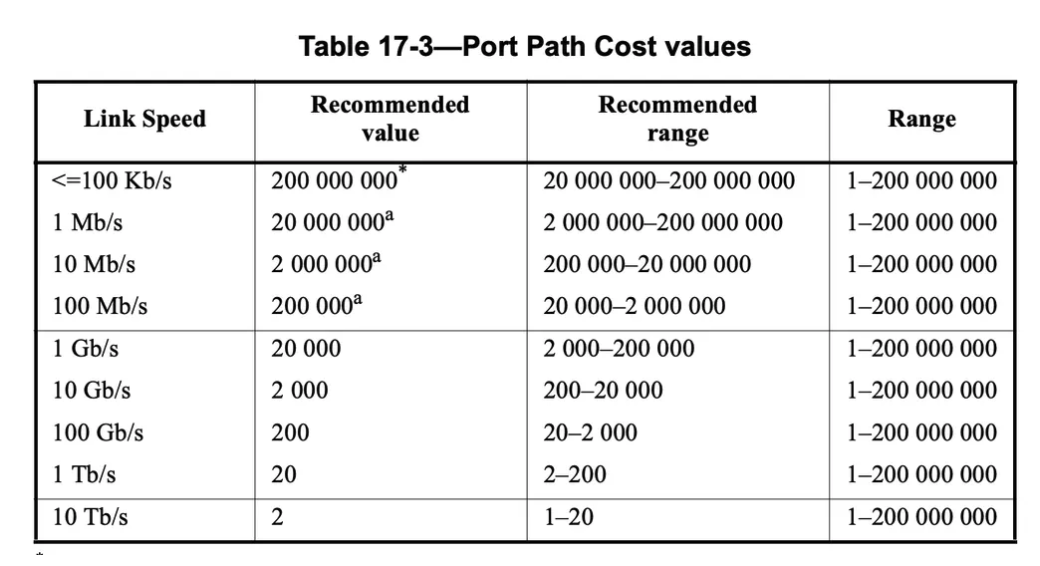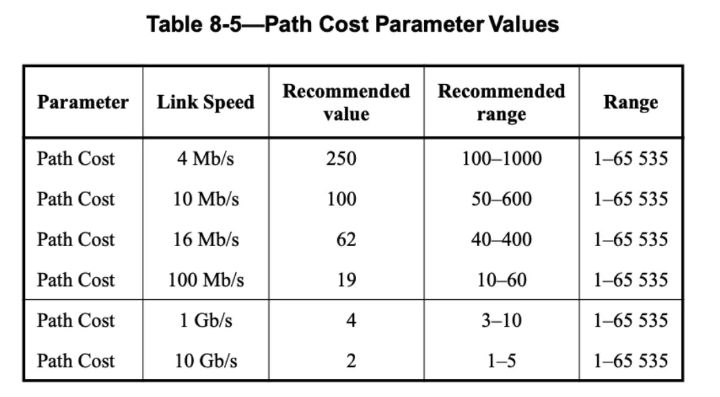 STP가 정의된 IEEE 802.1D - 1998 문서에서는 Path Cost 파라미터의 값을 2^16, 즉 1부터 65,535까지로 정의하고 있습니다.