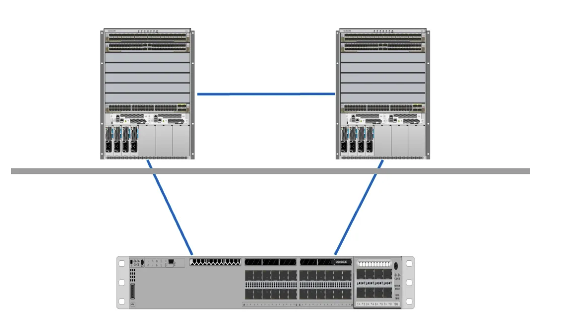 앞으로 구성할 고객사의 네트워크에는 위와 같은 구성이 포함됩니다. 새시급 스위치와 집선 L3 역할을 하는 스위치가 L2 구성이 됩니다. 백본 하나는 스탠바이 장비일 테니, 스탠바이 백본과 집선 L3간의 링크가 블락되는 게 자연스러운 수순일 겁니다.