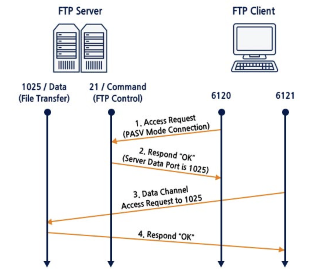 FTP Passive 모드는 위 그림과 같이 동작합니다.