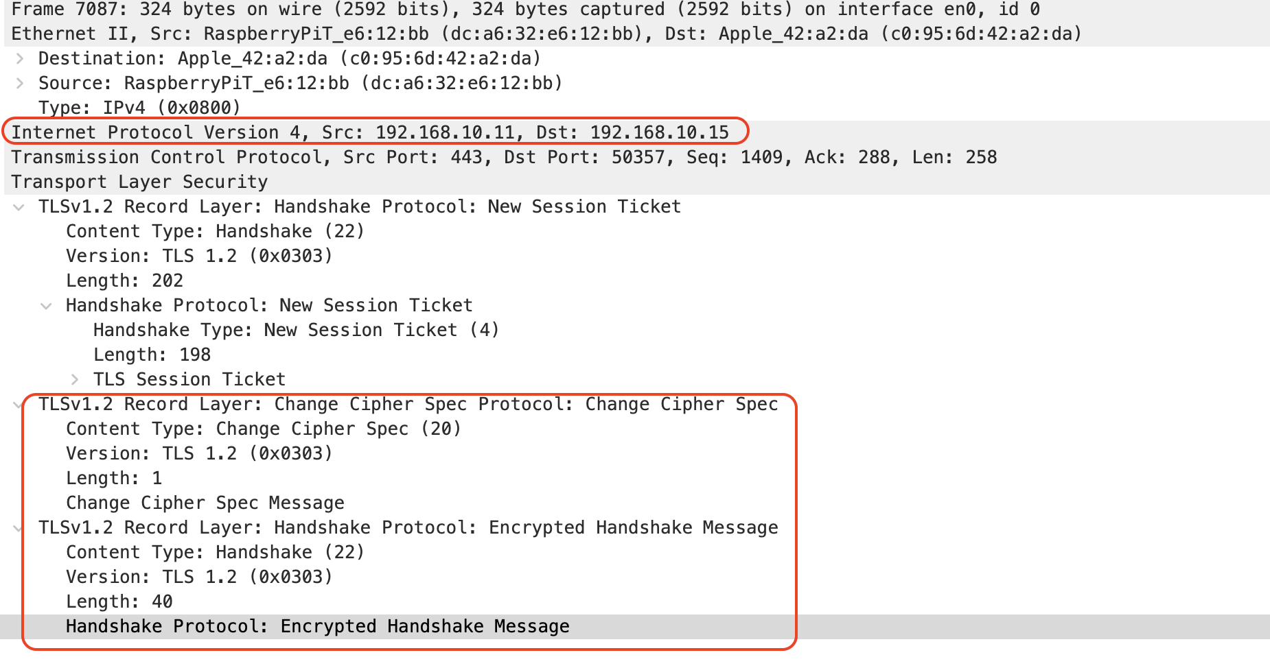 Client Key Exchange 과정에서 했던 Change Cipher Spec은 클라이언트에서 서버로 보내는 통신이 암호화된다는 의미입니다.